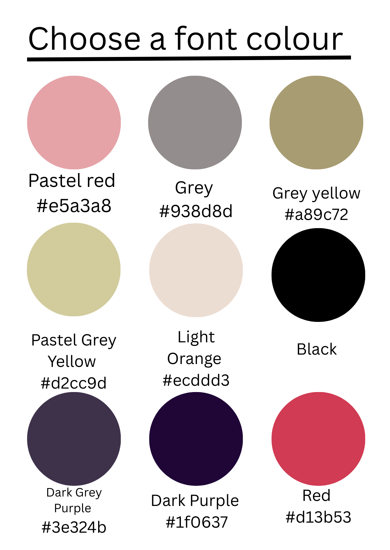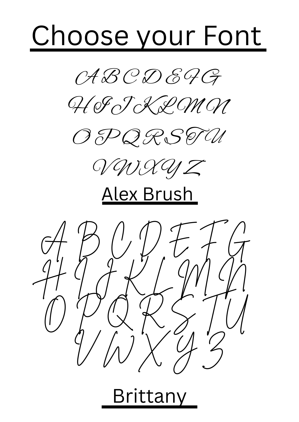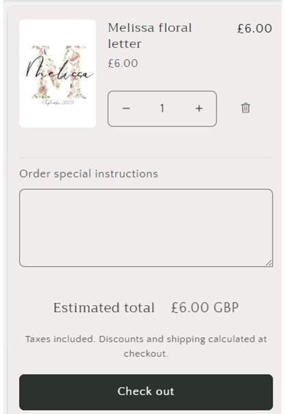 Step 5: In the notes box add Font and colour of font wanted, date of wedding, names and role in wedding (eg: Becky Bride, Suzannah Bridesmaid, Jenifer Maid of honour)