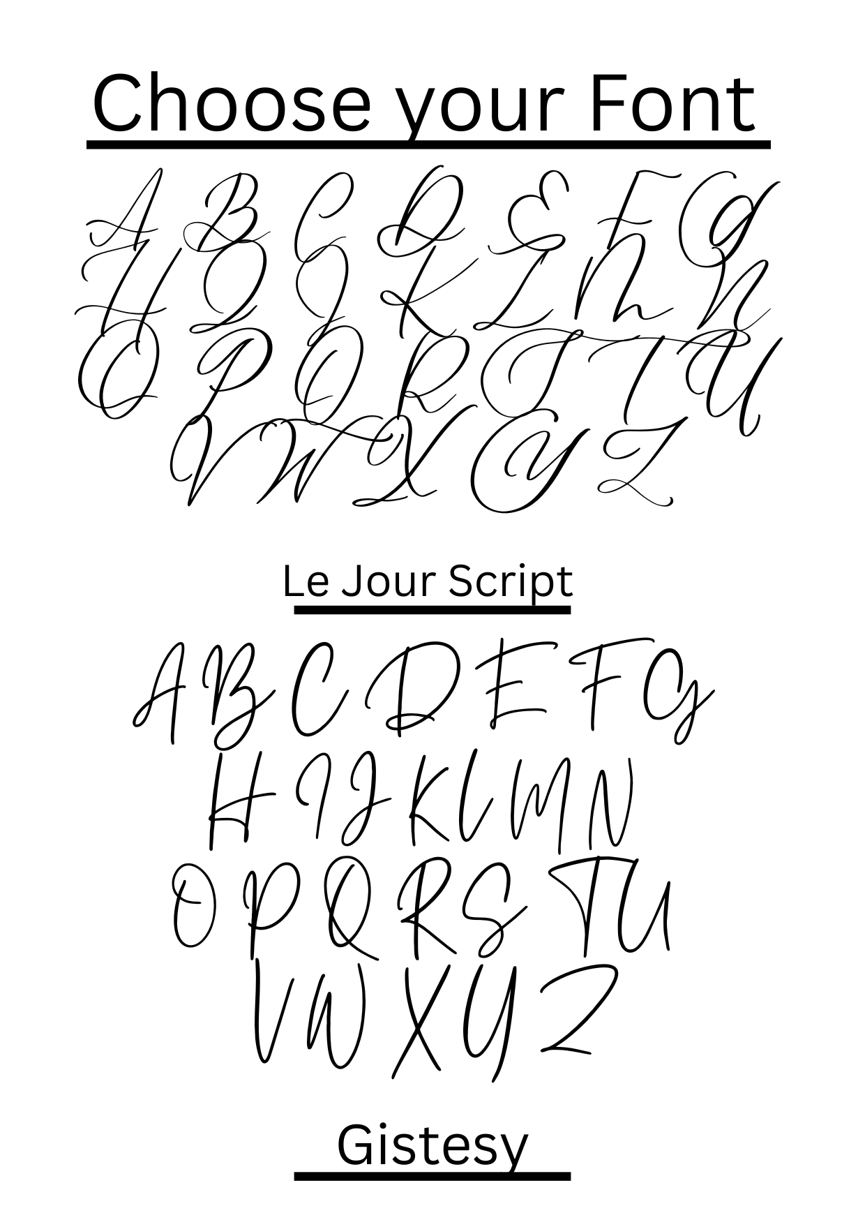Step 5: In the notes box add Font and colour of font wanted, date of wedding, names and role in wedding (eg: Becky Bride, Suzannah Bridesmaid, Jenifer Maid of honour)